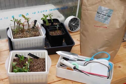 ☁︎/26℃ なかなか晴れない日が続きます 実生株を無心に抜いて埋める。 ヒマなので…と言う訳ではないですがちょっと屋内での管理が大変になってきたので梅雨明けの植え替え予定の実生株を急遽鉢上げします。 昨日届いた高級用土のベストソイルミックスで早く植…